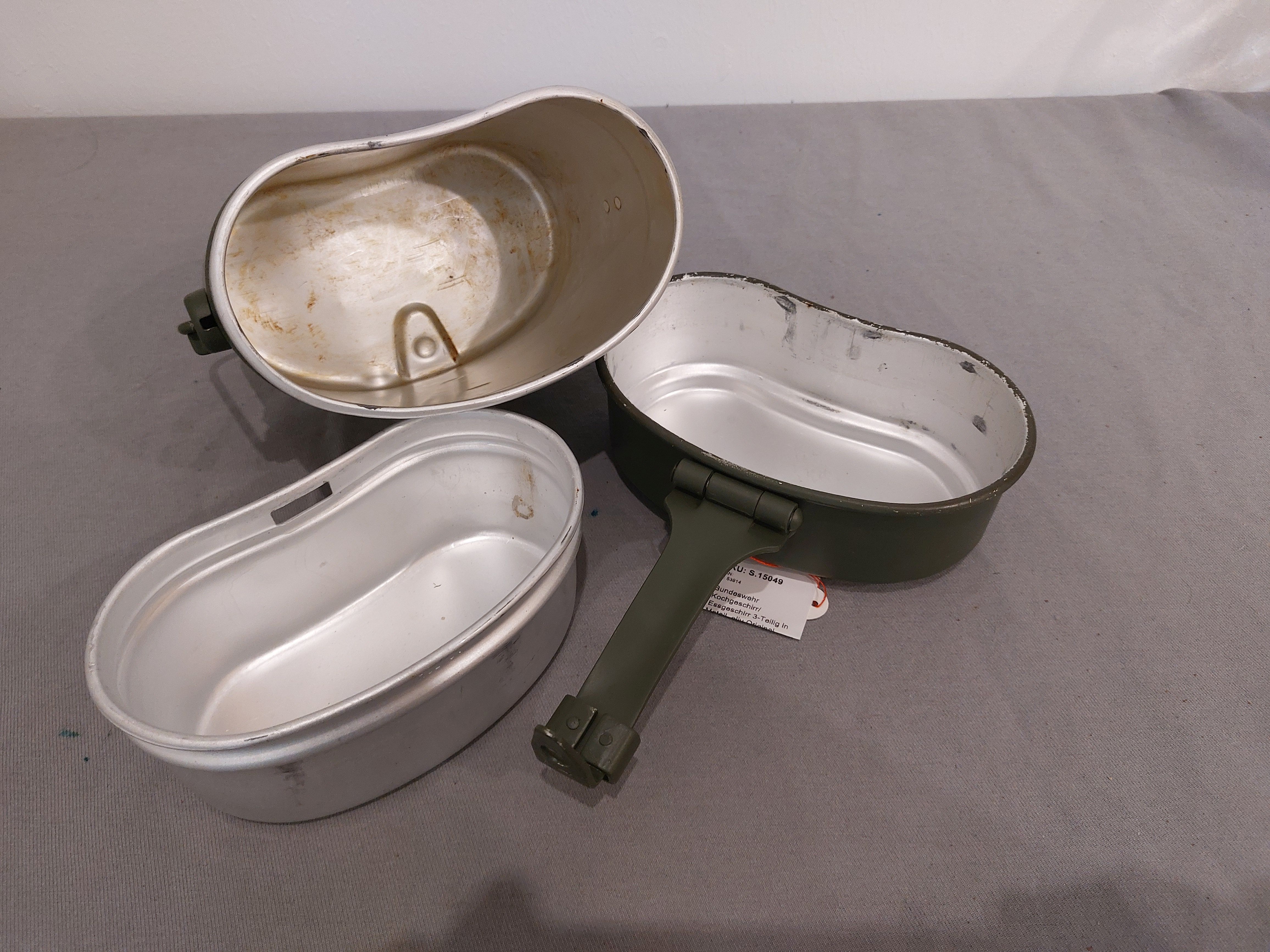 Bundeswehr Kochgeschirr/ Essgeschirr 3-Teilig in Metall, oliv Original gebraucht HSZ 84