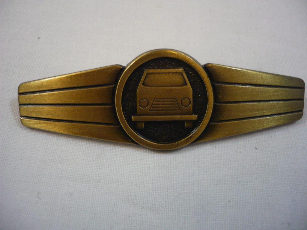 Tätigkeitsabzeichen, Kraftfahrpersonal, Bronze, Metall Metall mit 2 Stiften und Klemmsicherung, Breite 74mm, Neu