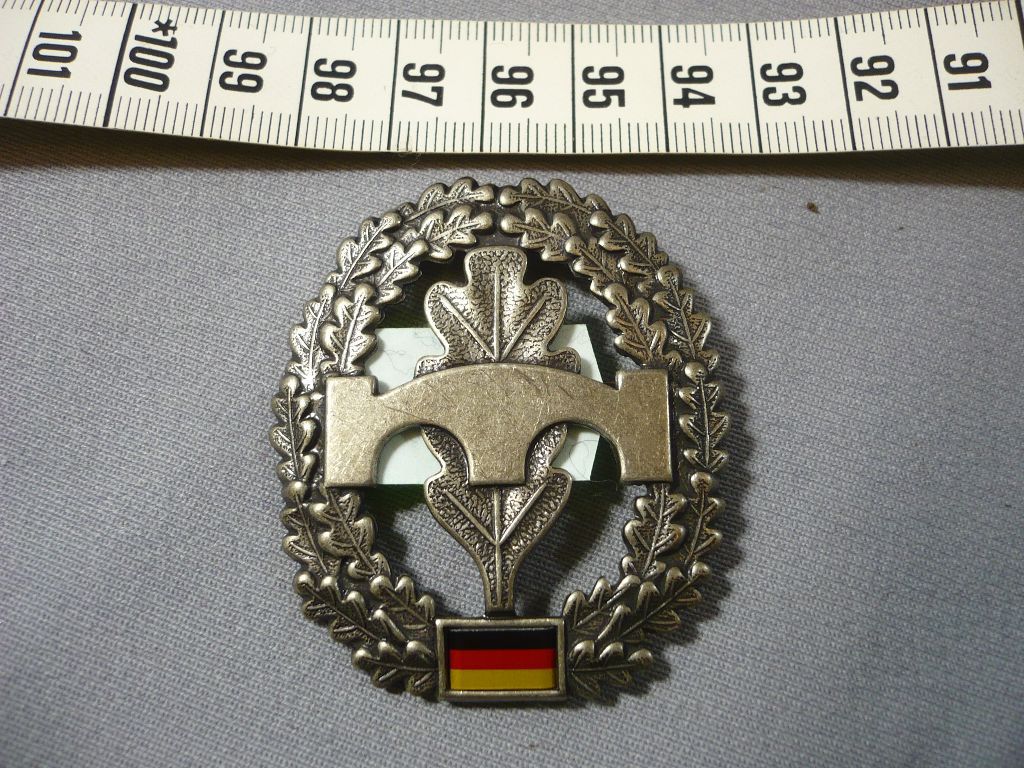 Barettabzeichen, Pioniertruppe, Metall altsilber mit National., für das korallenrote Barett,