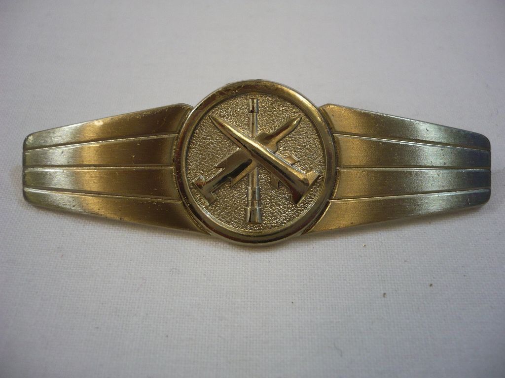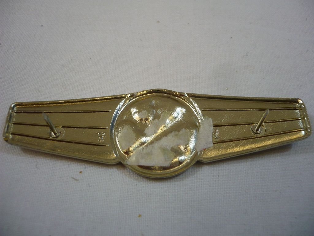 Tätigkeitsabzeichen, Überwasserwaffenpersonal, Silber, Metall Metall mit 2 Stiften und Klemmsicherung, Breite 74mm, Neu