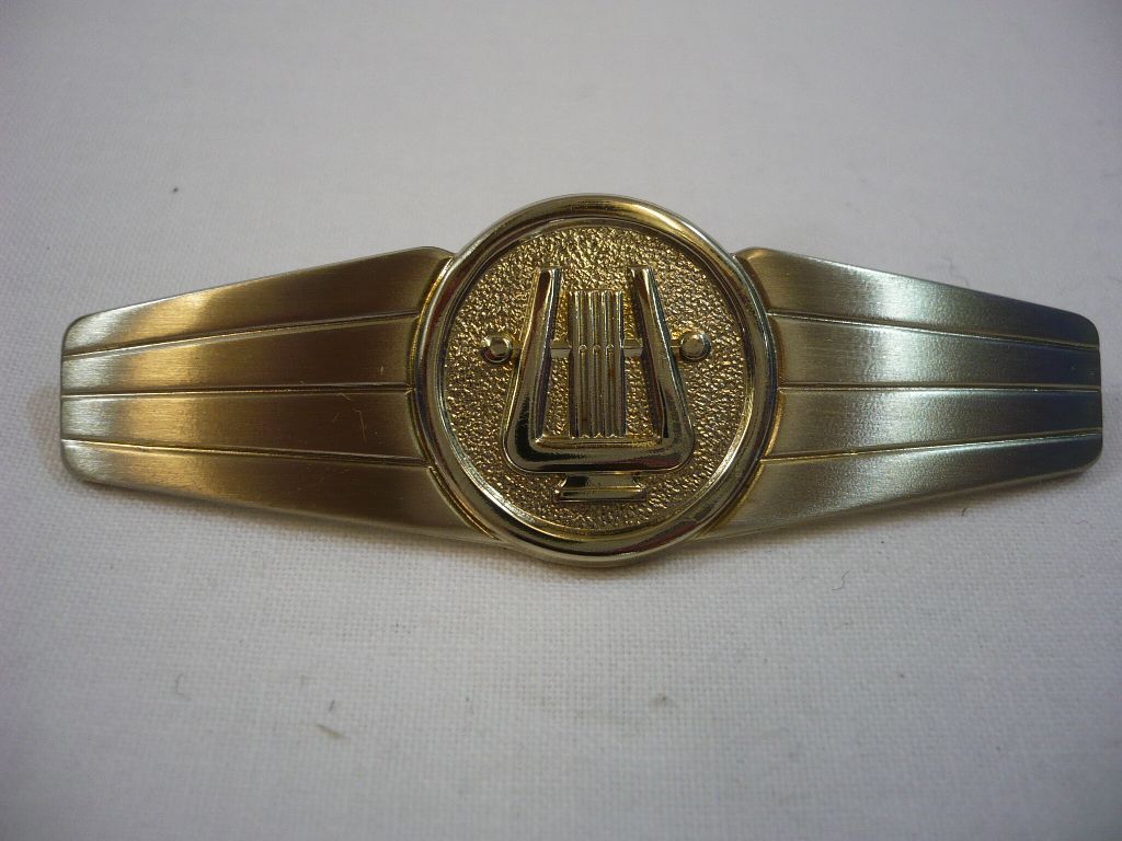Tätigkeitsabzeichen, Militärmusikpersonal, Silber, Metall Metall mit 2 Stiften und Klemmsicherung, Breite 74mm, Neu