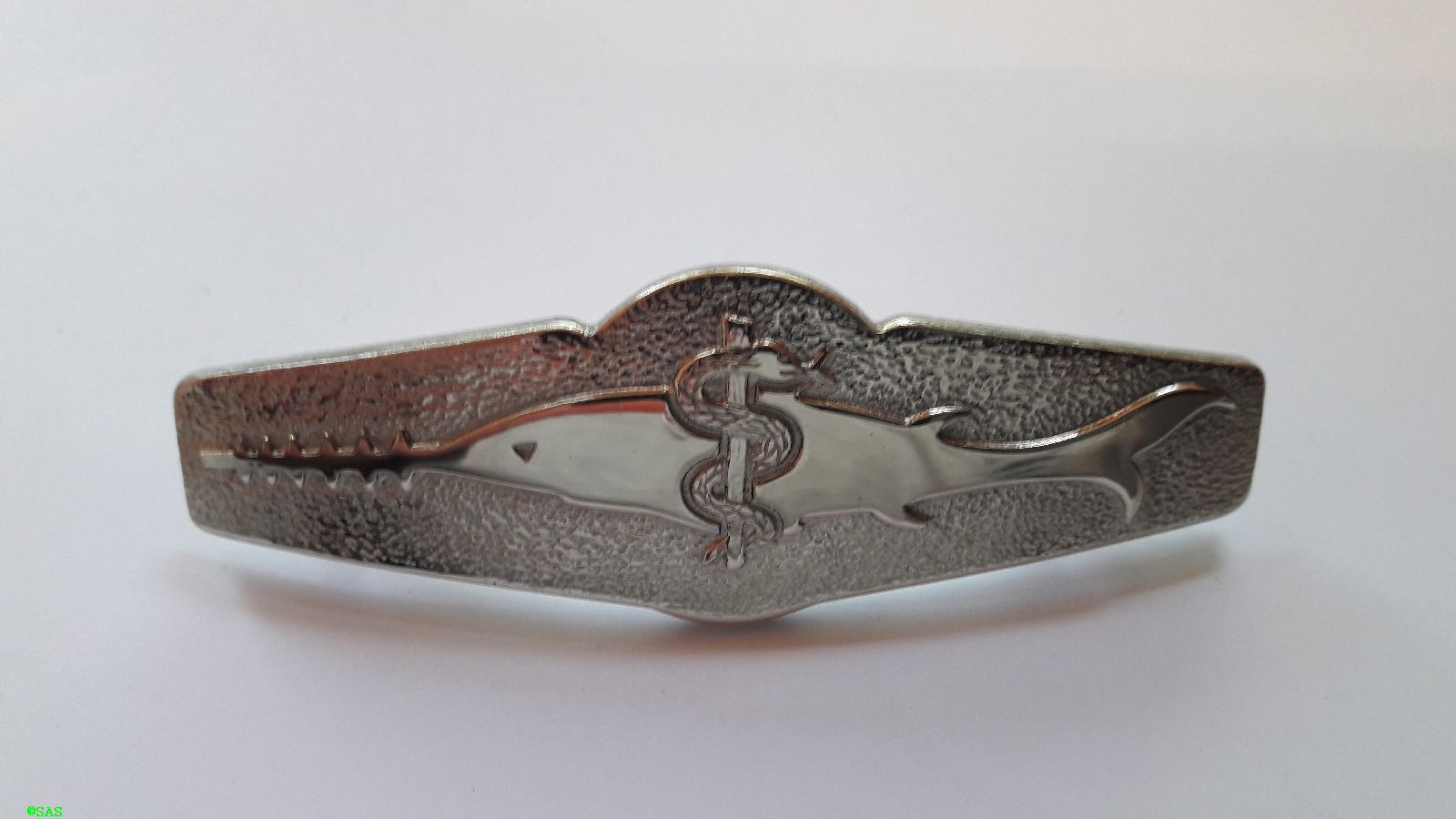 Tätigkeitsabzeichen, Tauchmedizinisches Assistenzpersonal Silber, Metall Metall mit 2 Stiften und Klemmsicherung, Breite 74mm, Neu