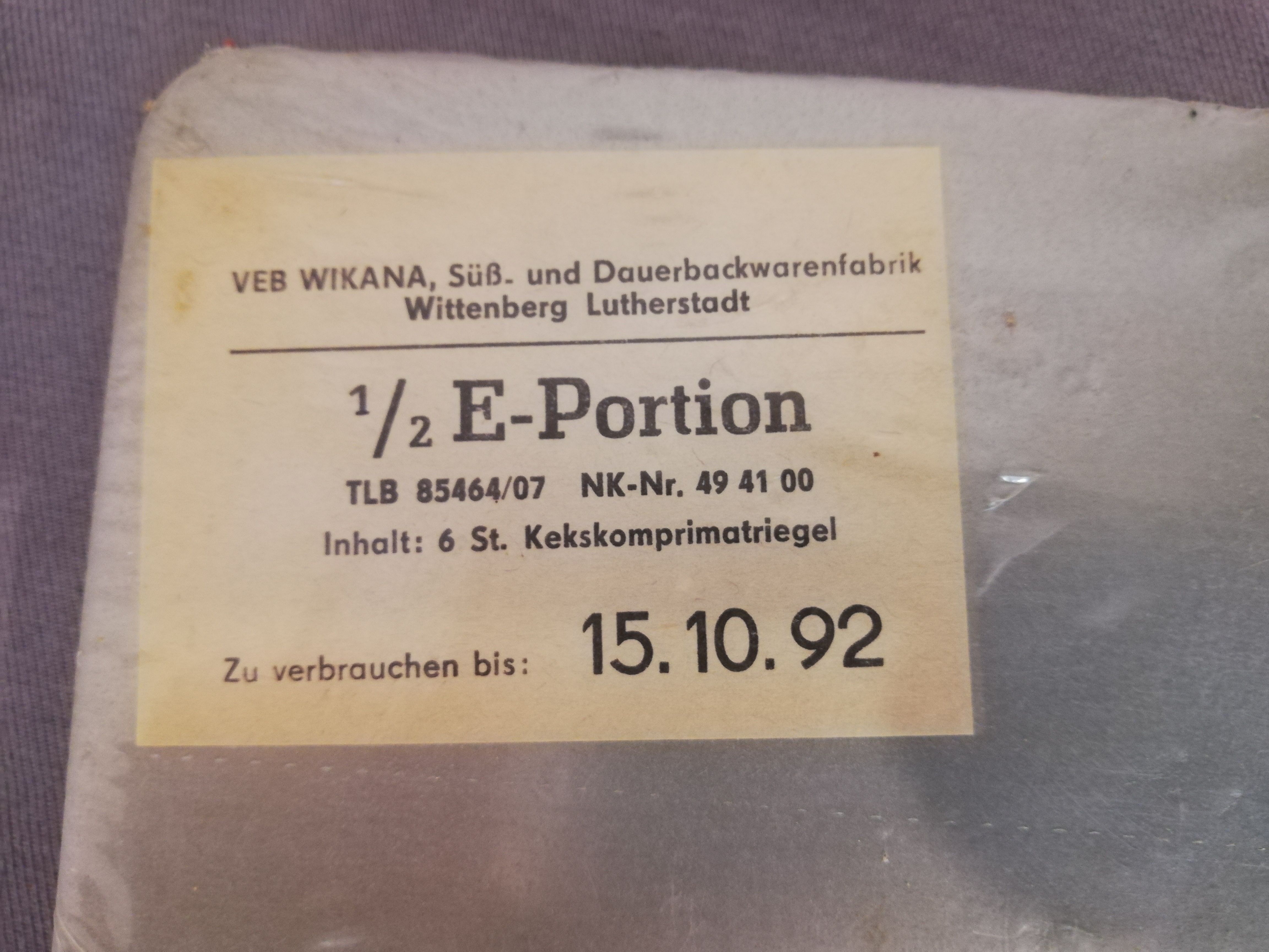 1/2 E. Portion - zu verbrauchen bis 15.10.92 - original verpackt - "Nur zu Sammlerzwecken... mehr