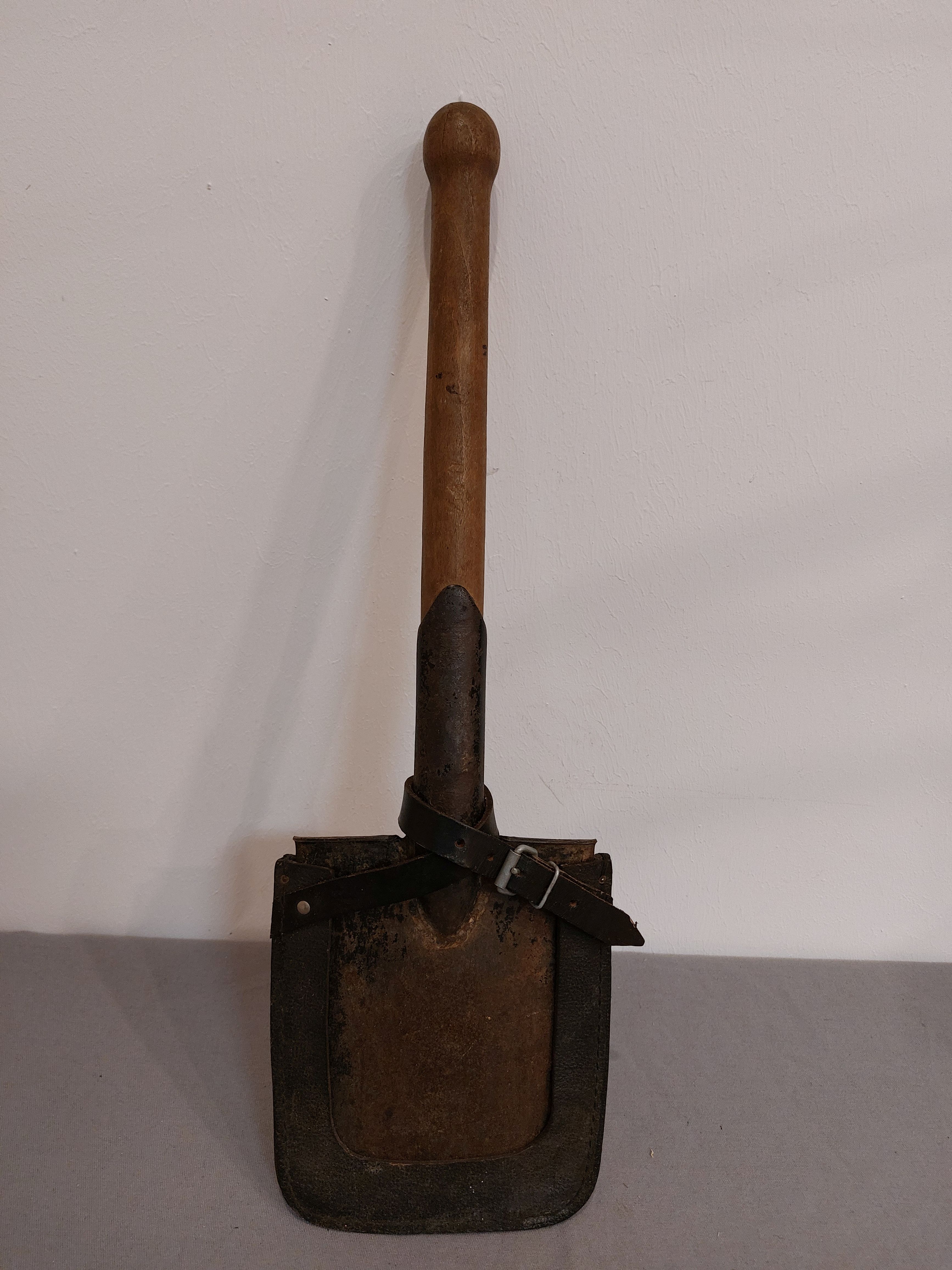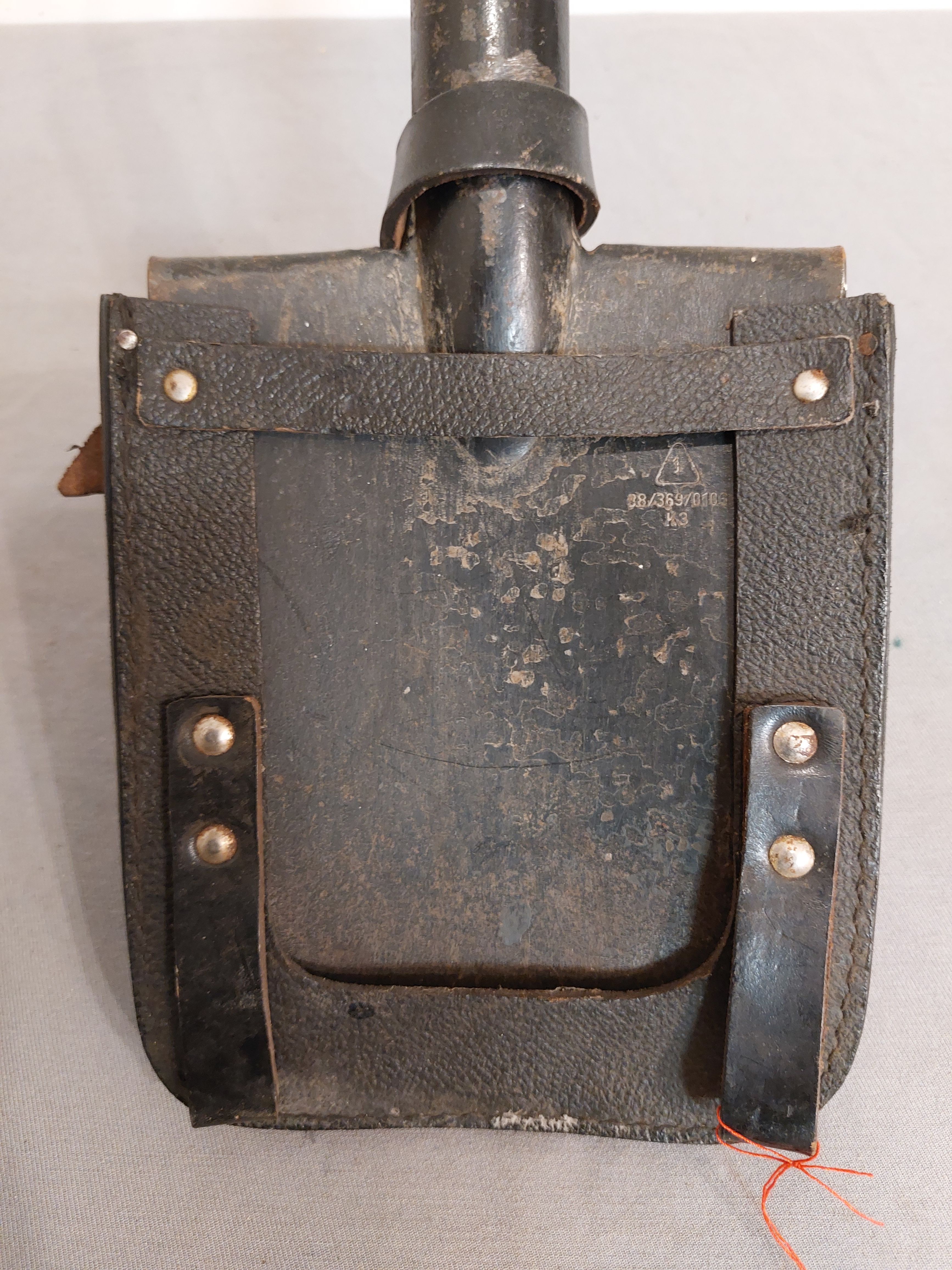 DDR Spaten Feldspaten mit Tasche in Leder schwarz NVA Original