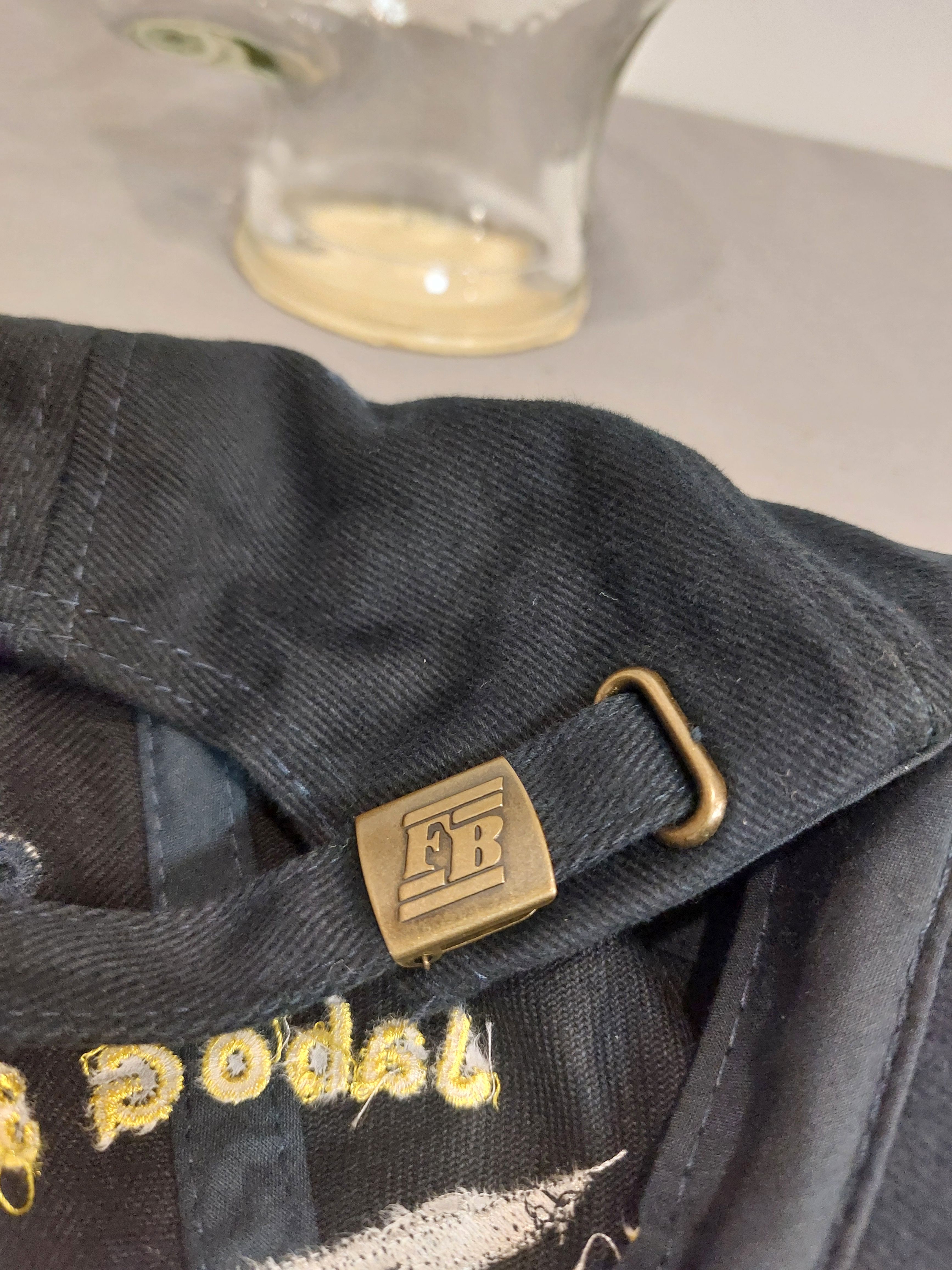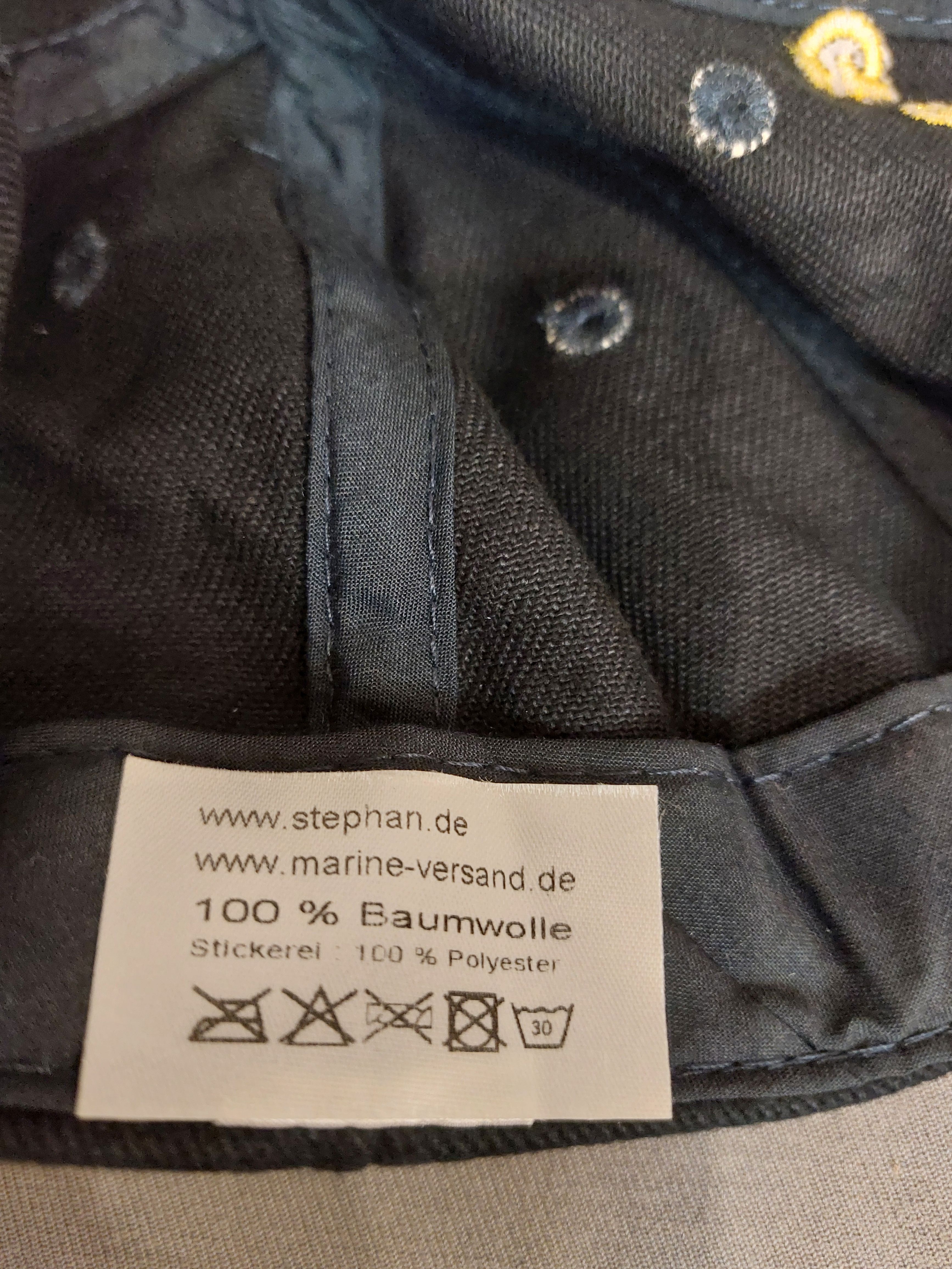 blaue Kappe mit eingesticktem Schriftzug und Abzeichen