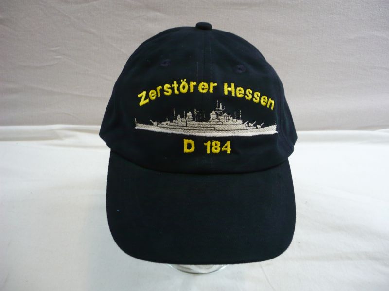 Baseballcap, Zerstörer Hessen D184 blaue Kappe mit eingesticktem Schriftzug und Abzeichen, Grösse universal bis 62 verstellbar durch Schieber hinten, Neu