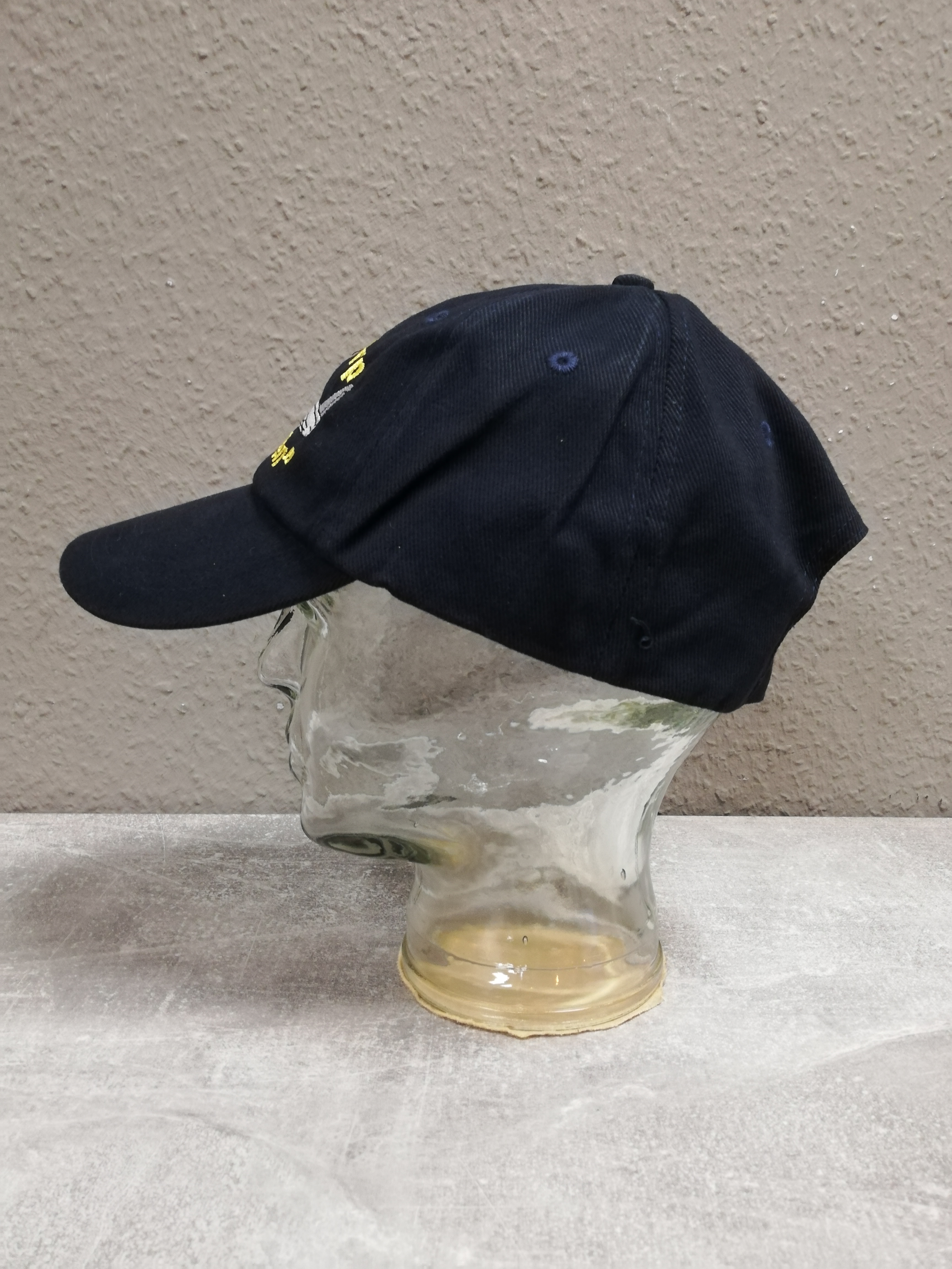 blaue Kappe mit eingesticktem Schriftzug und Abzeichen, 100% Baumwolle, Grösse universal bis 62 verstellbar durch Schieber hinten, Neu