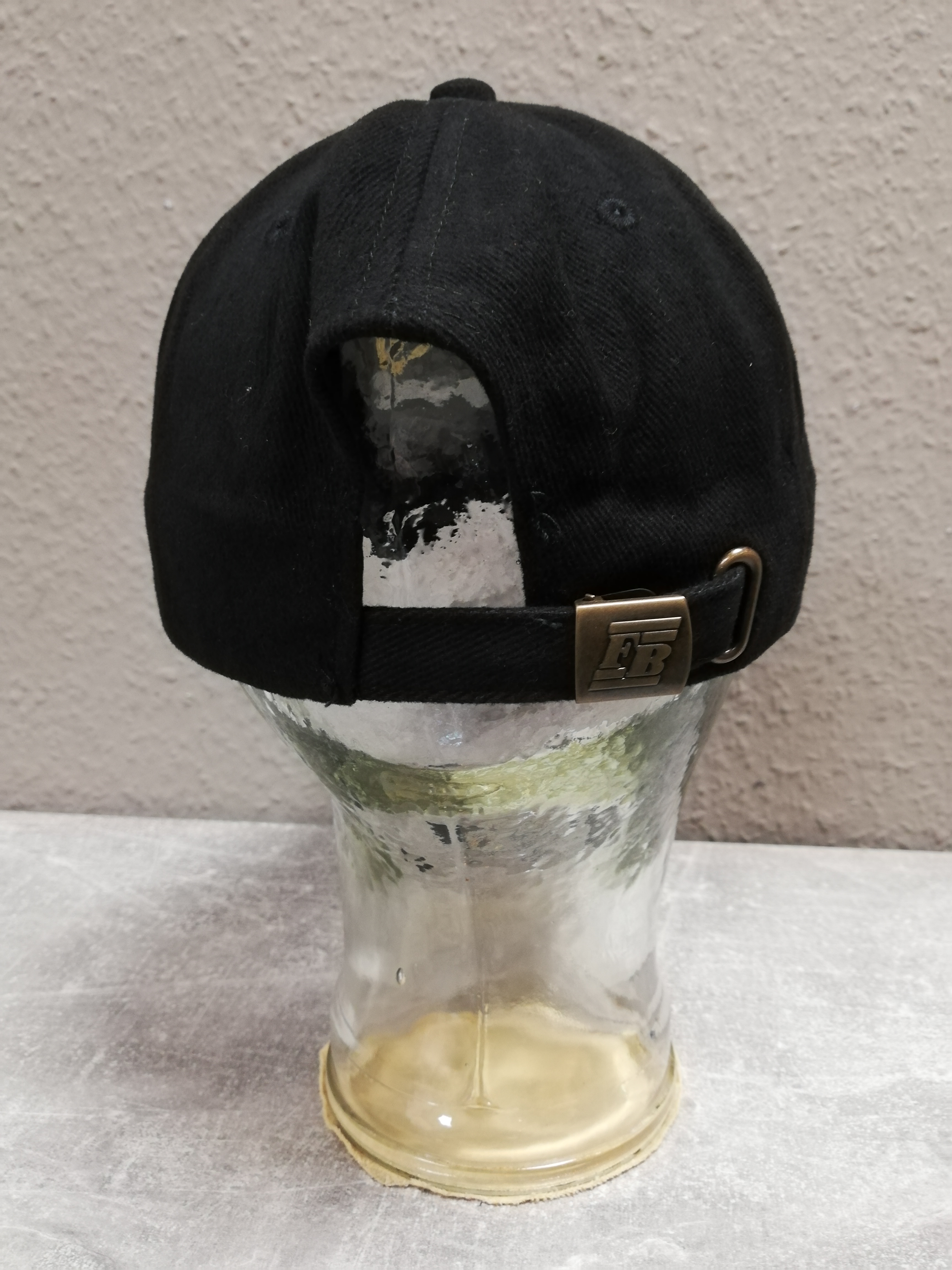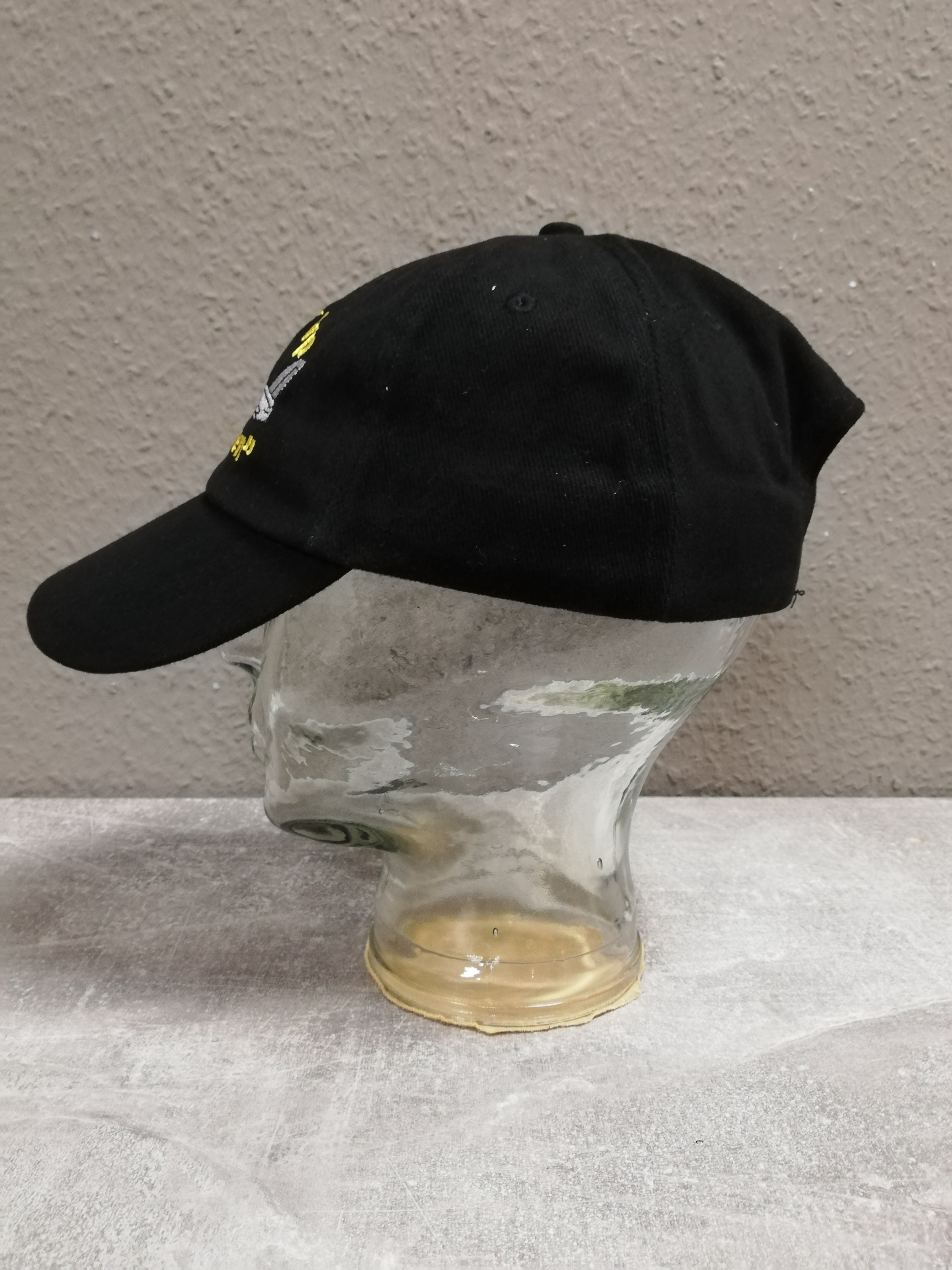 schwarze Kappe mit eingesticktem Schriftzug und Abzeichen, 100% Baumwolle, Grösse universal bis 62 verstellbar durch Schieber hinten, Neu
