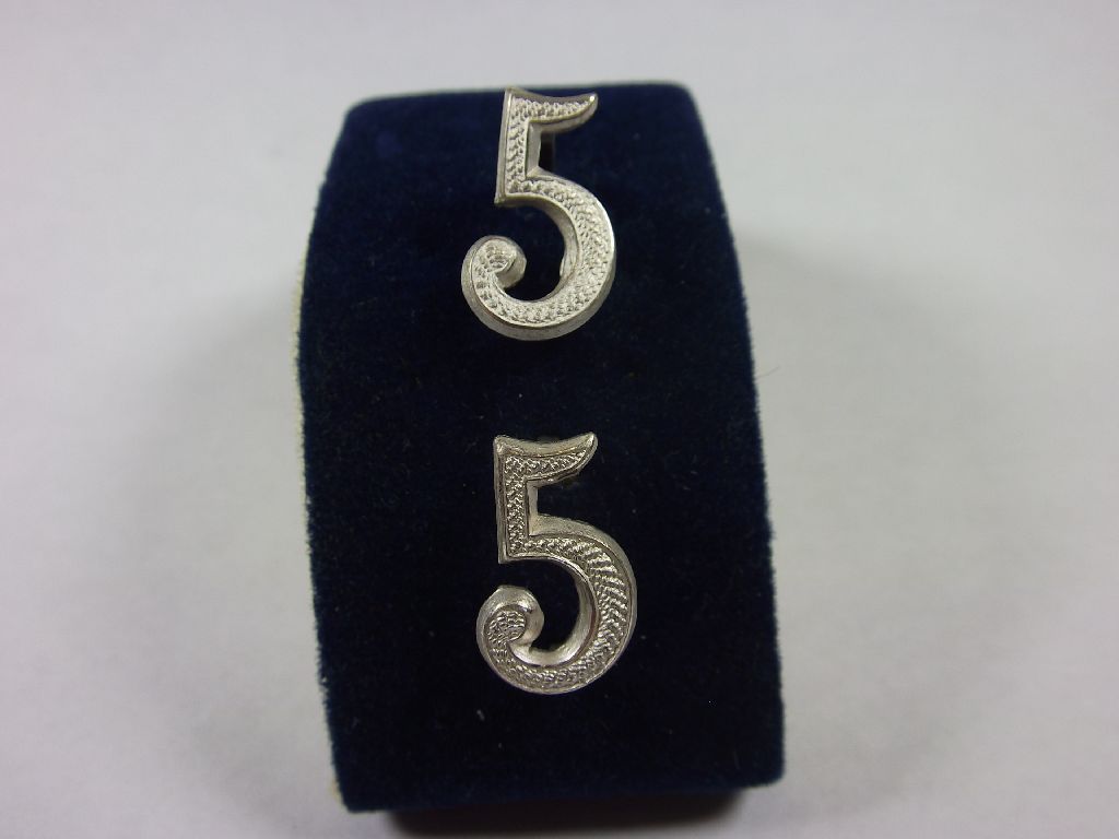 Schulterklappenauflage Zahl " 5 " gepunktet, silbern, 17mm
