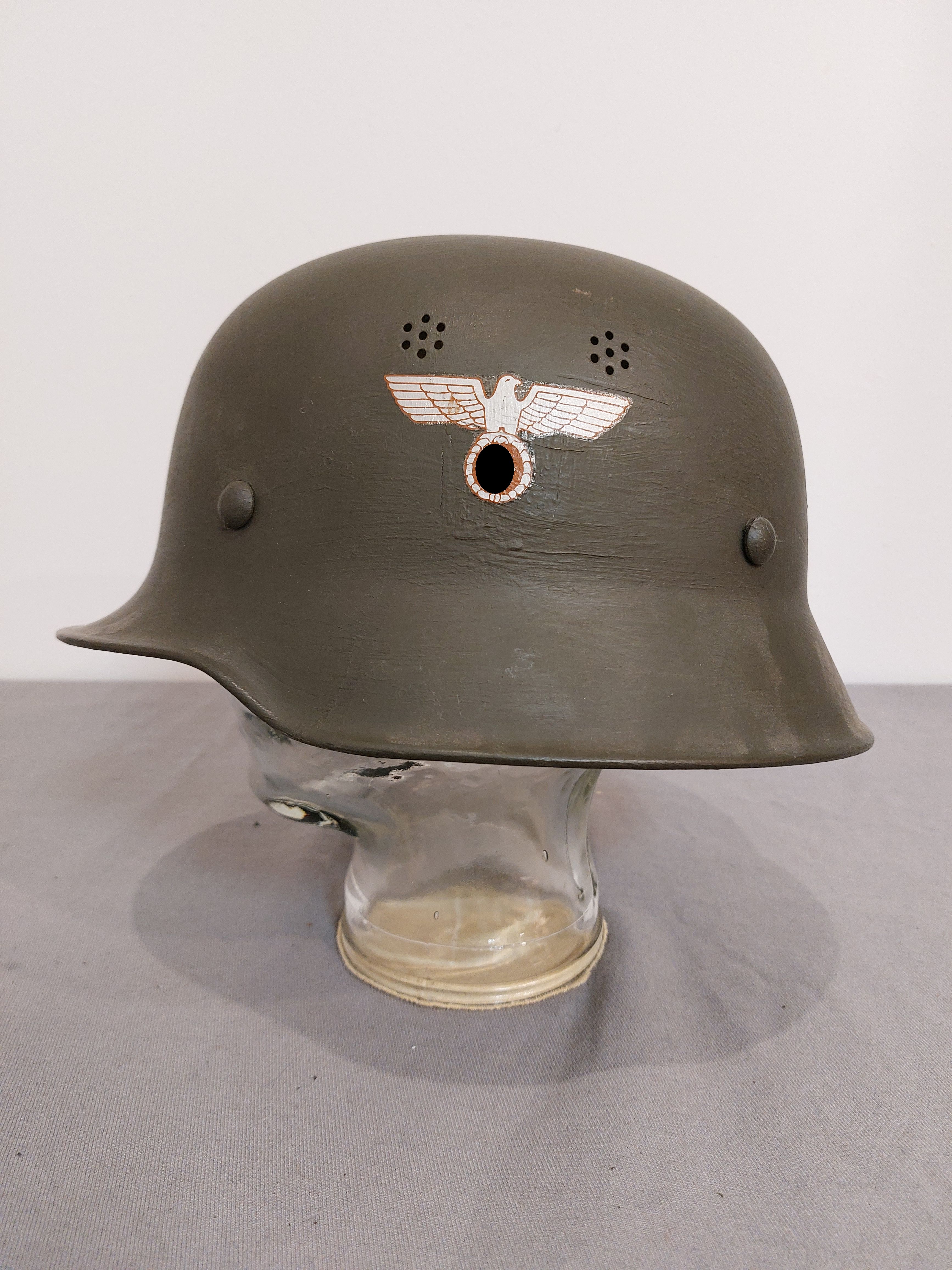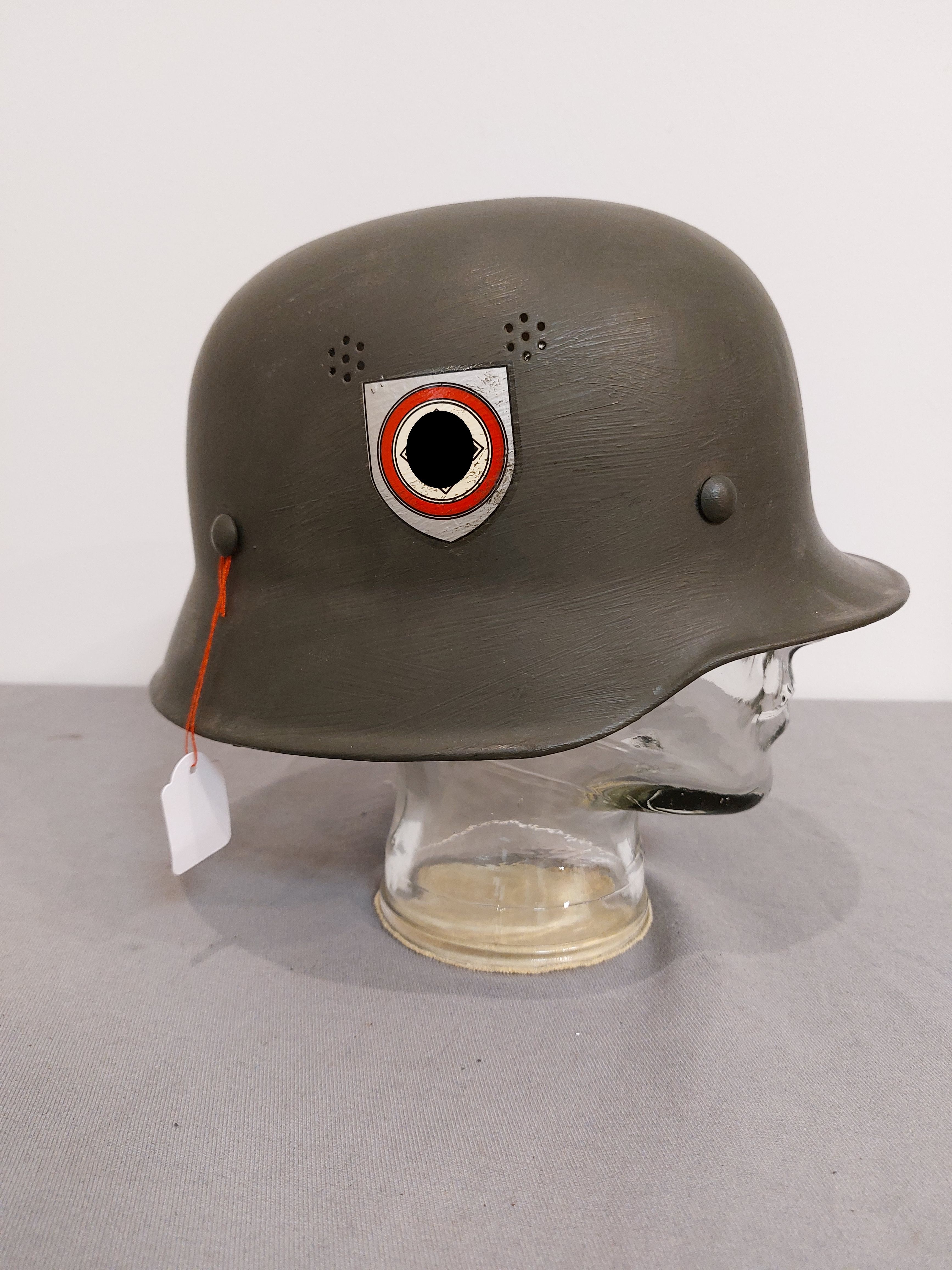 3.Reich Stahlhelm Feuerwehr ohne Innenfutter überlackiert mit Abzeichen RAD