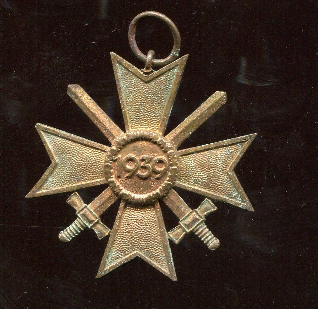 Deutsches Reich Kriegsverdienstkreuz 1939 mit Schwertern Buntmetall Bodenfund?
