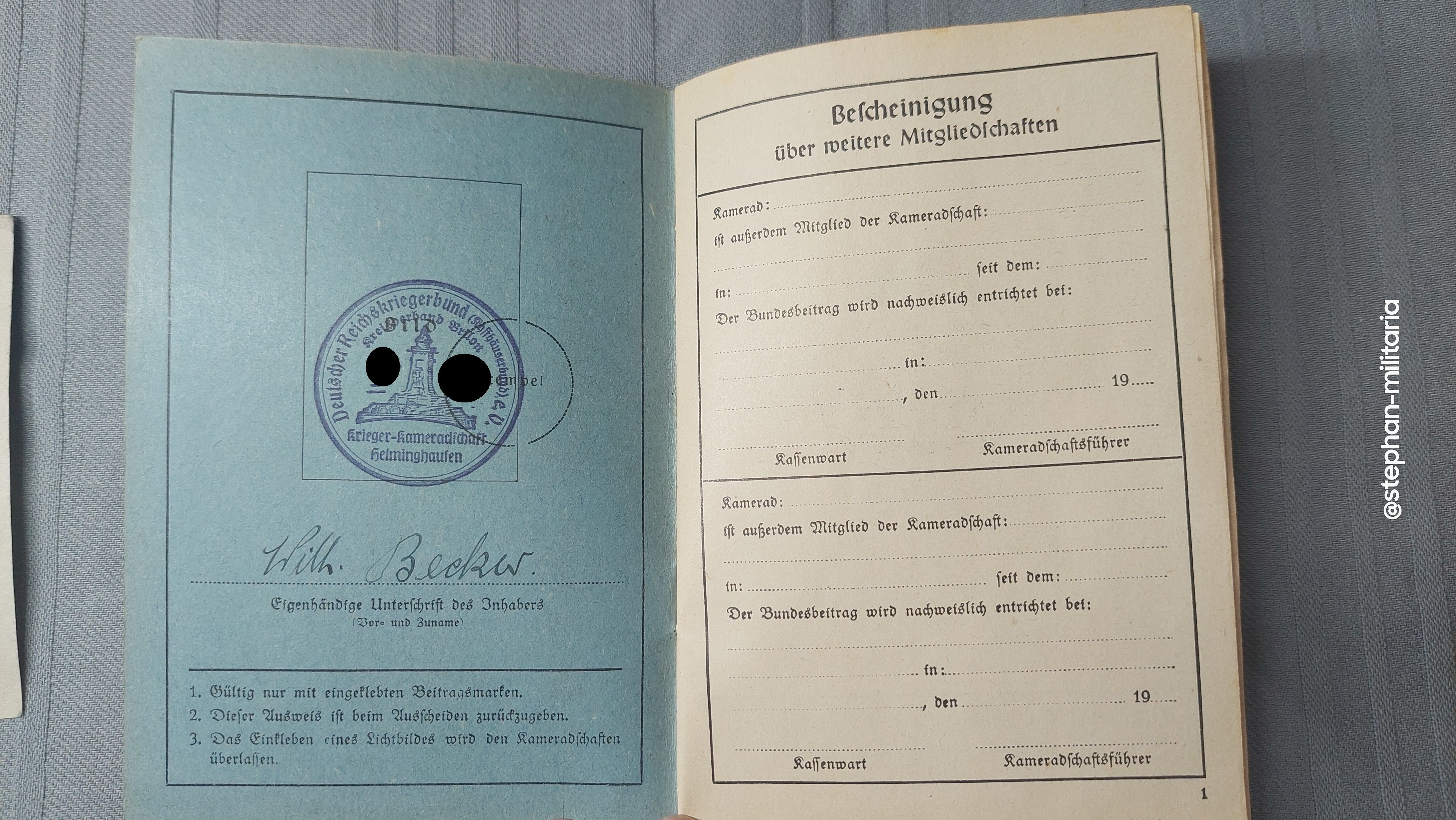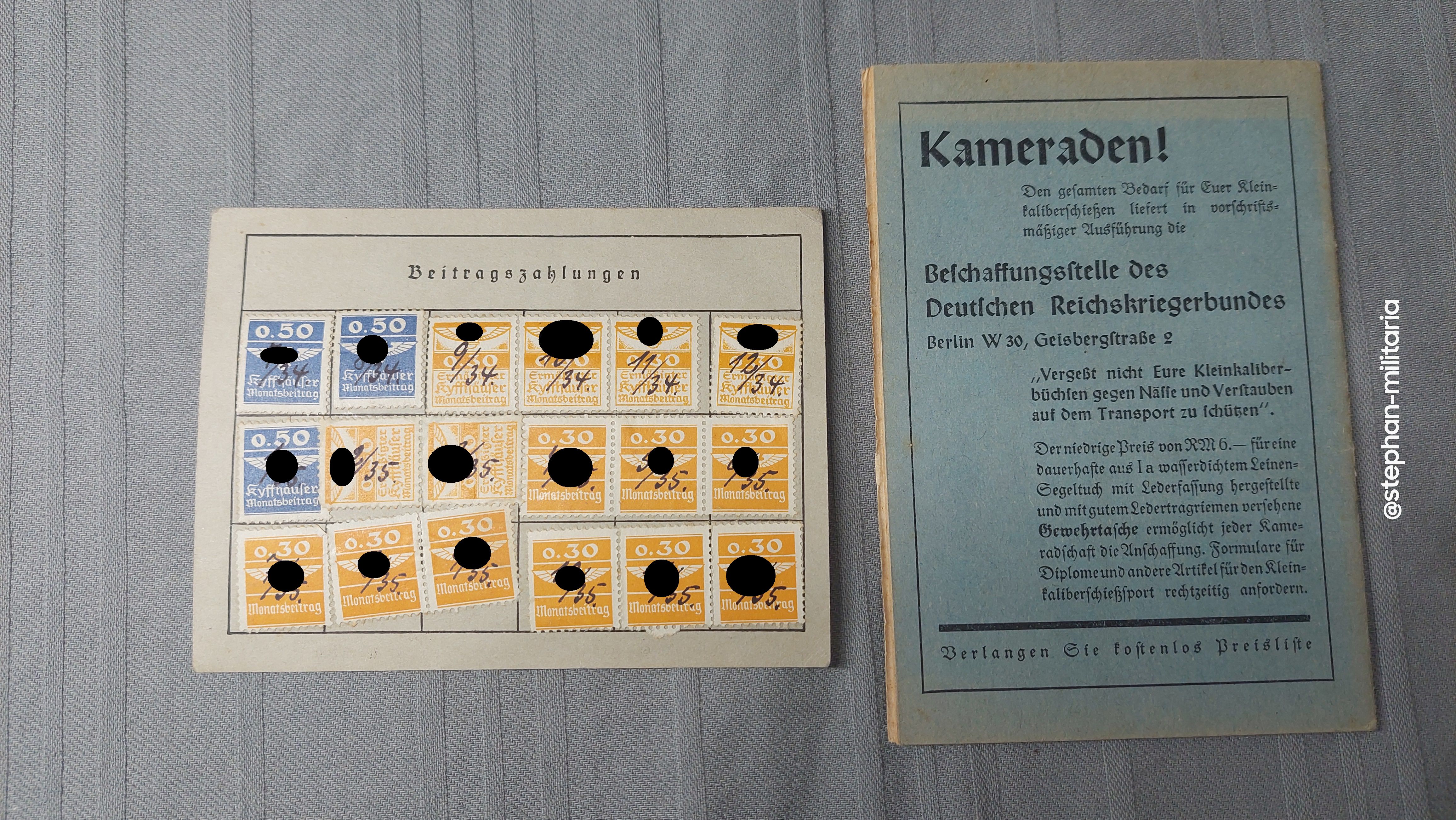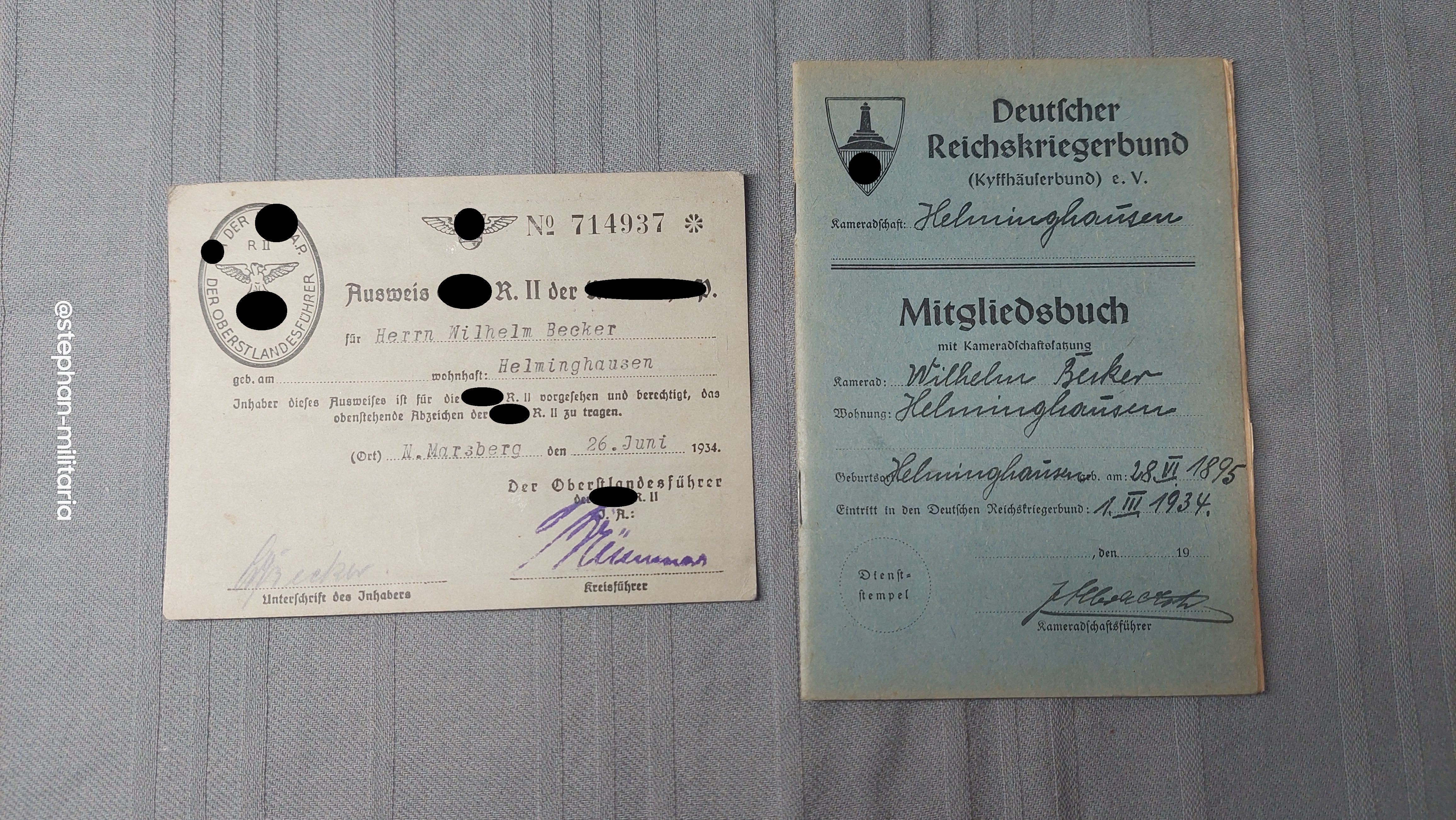 Deutscher Reichskriegerbund Mitgliedsbuch und Ausweis X.A.R.II der NXDAP - Helminghausen