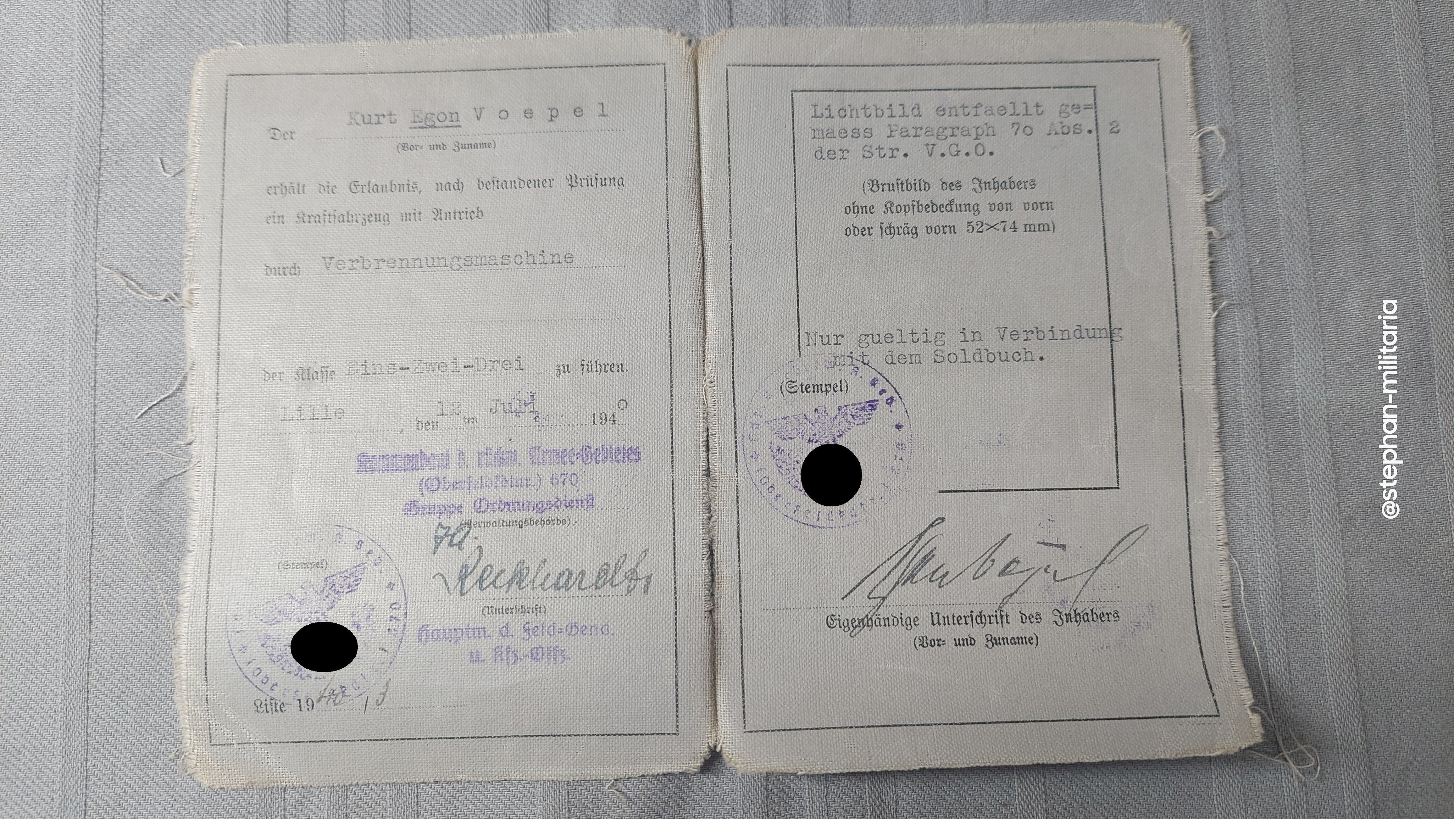 Wehrmacht Führerschein von 1940 für Kriegsverwaltungs Oberinspekteur Remscheid