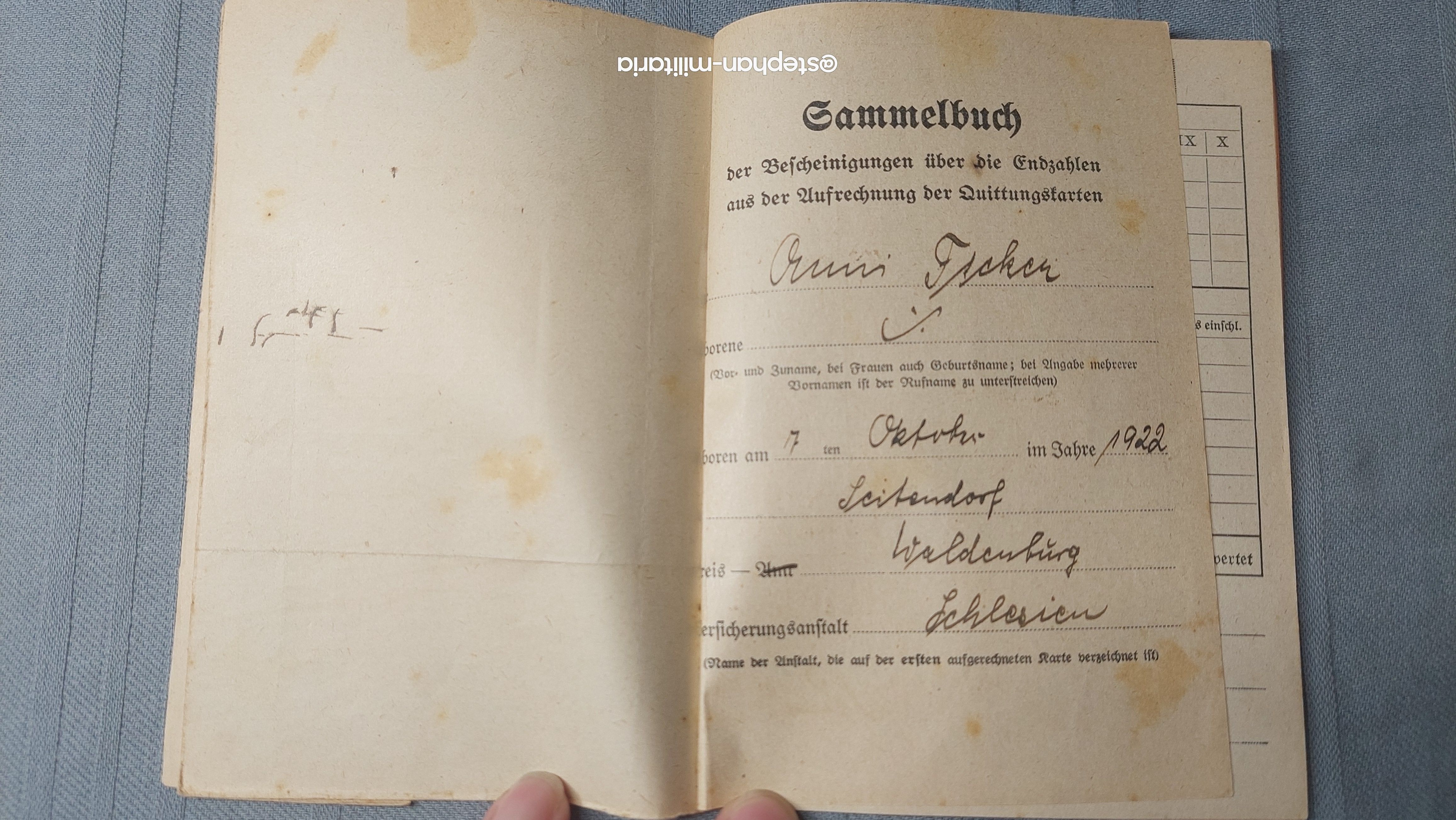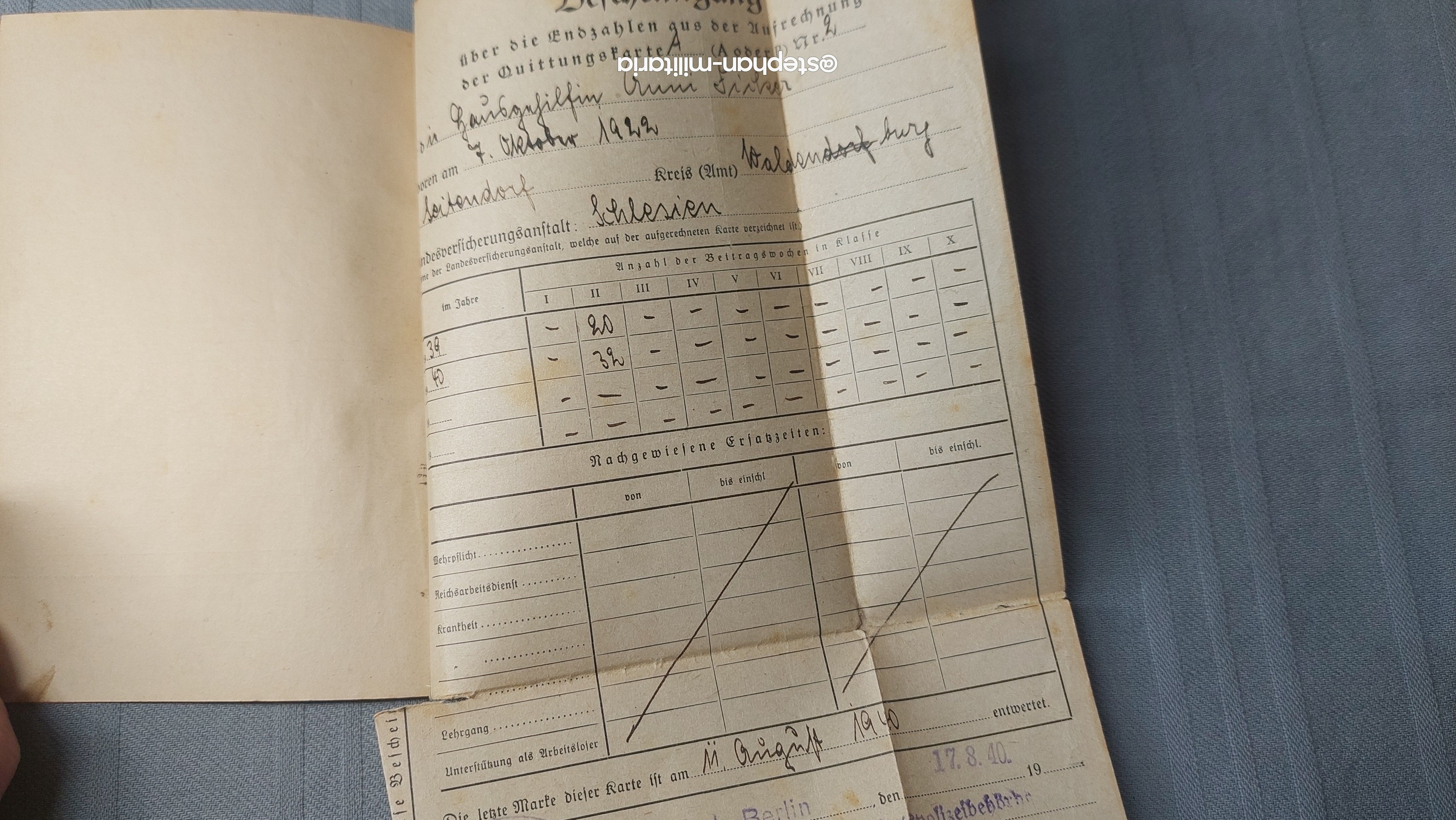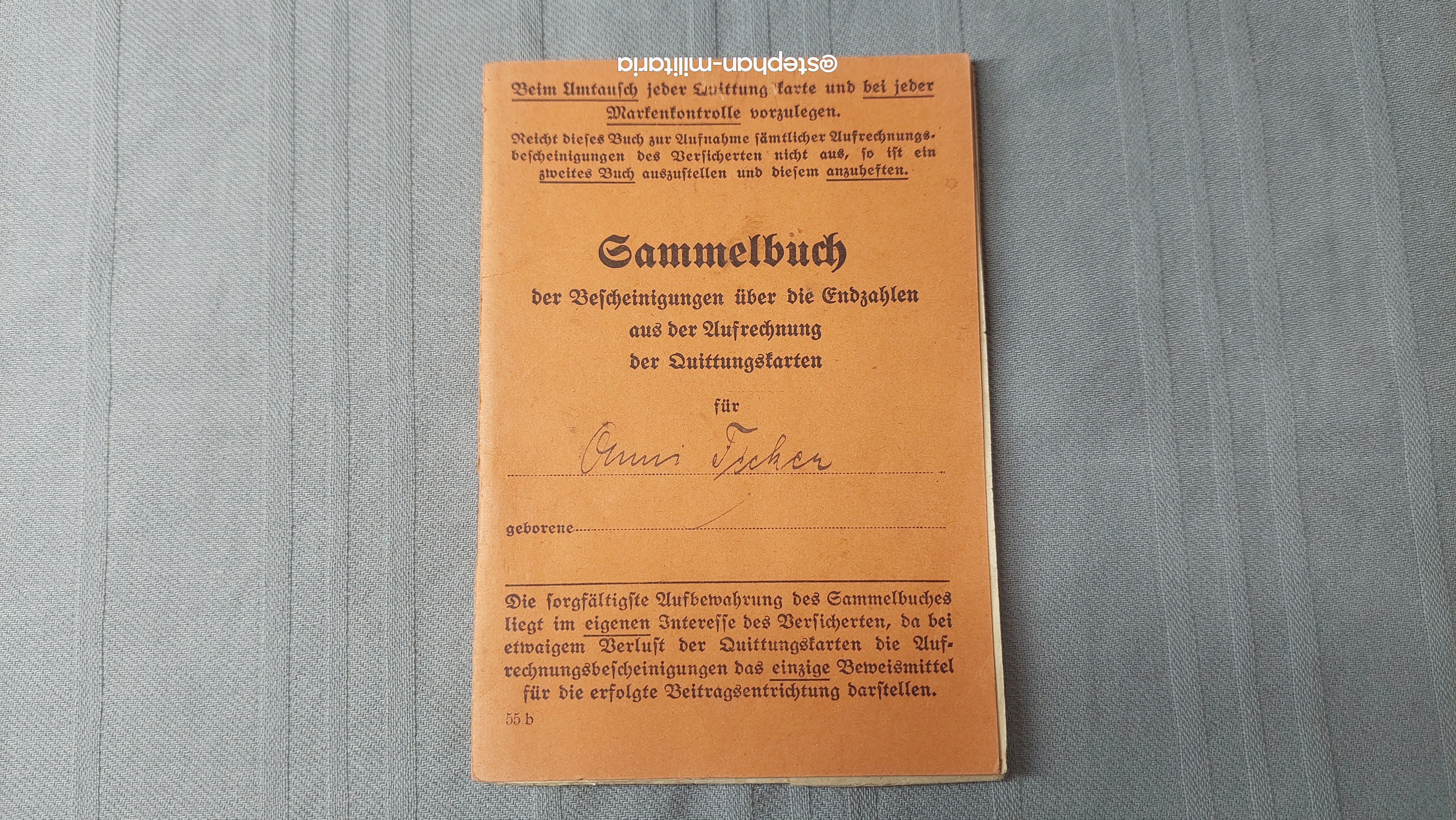 3.Reich Sammelbuch der Bescheinigungen über die Endzahlen- Versicherung