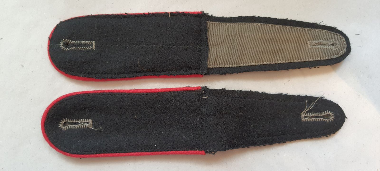 Schulterklappen Mannschaften, schwarz mit roter Paspel, ältere Fertigung