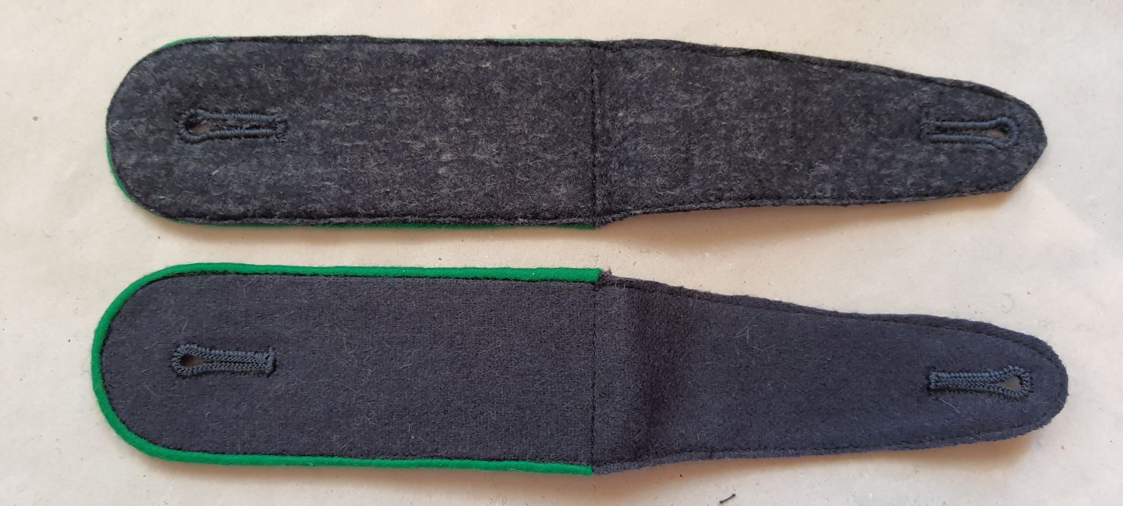Schulterklappen Mannschaften, blaugrau mit grüner Paspel. ältere Fertigung