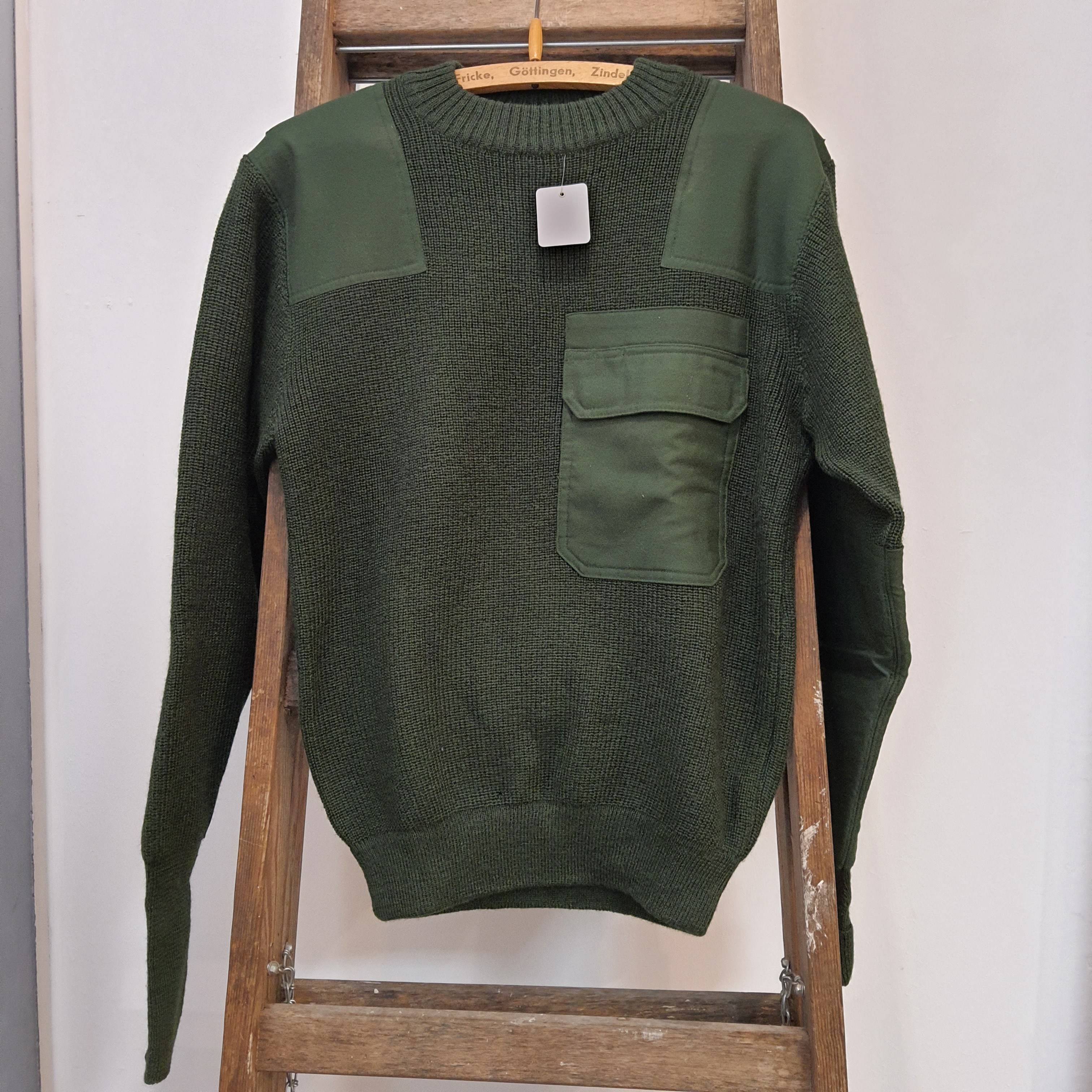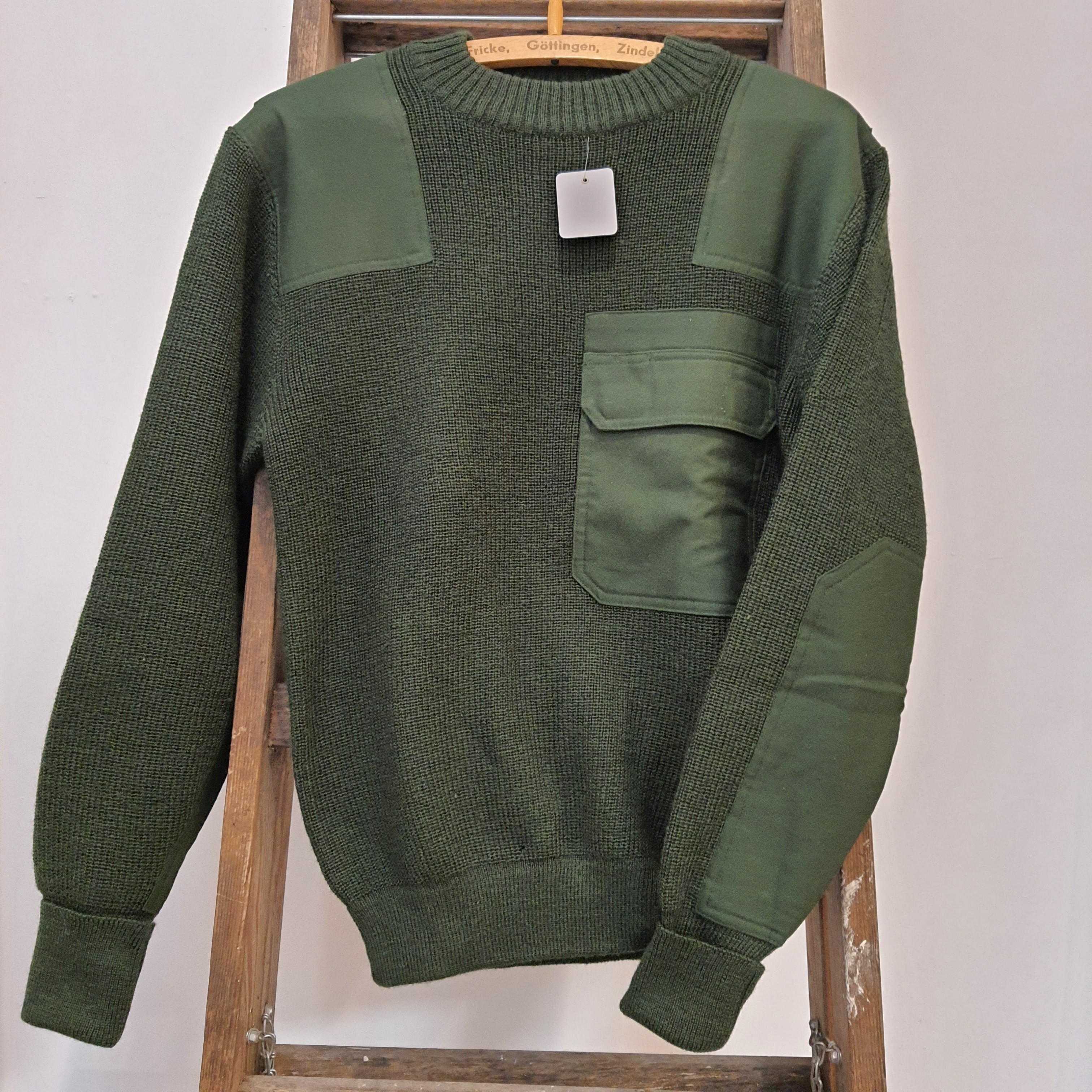 Allgemein: Pullover Grün wie der Bundeswehr Pullover Ideal für die Jagd und Forst, *+Größe 44+* Größe 44, Gebraucht 80% Schurwolle, 20% Polyamid - verstärkte Ellbogen- und Schulterpartie - Schulterklappen - aufgesetzte Brusttasche mit Klettverschluss und integriertem Stiftköcher - gedoppelter Rundhalsausschnitt