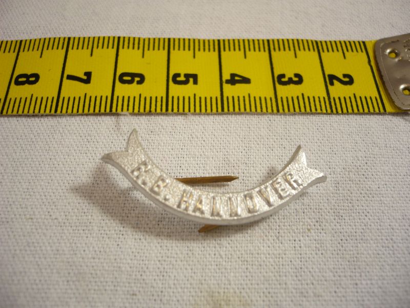 Niedersachsen: Mützenabzeichen Banderole, R.B.Hannover Aluminium, mit zwei Splinten auf der Rückseite, Neu