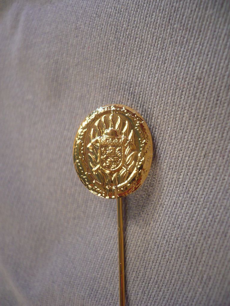 Hessen: Feuerwehr- Leistungsabzeichen in Gold, Miniatur an langer Nadel zum Anstecken, Zustand 1-