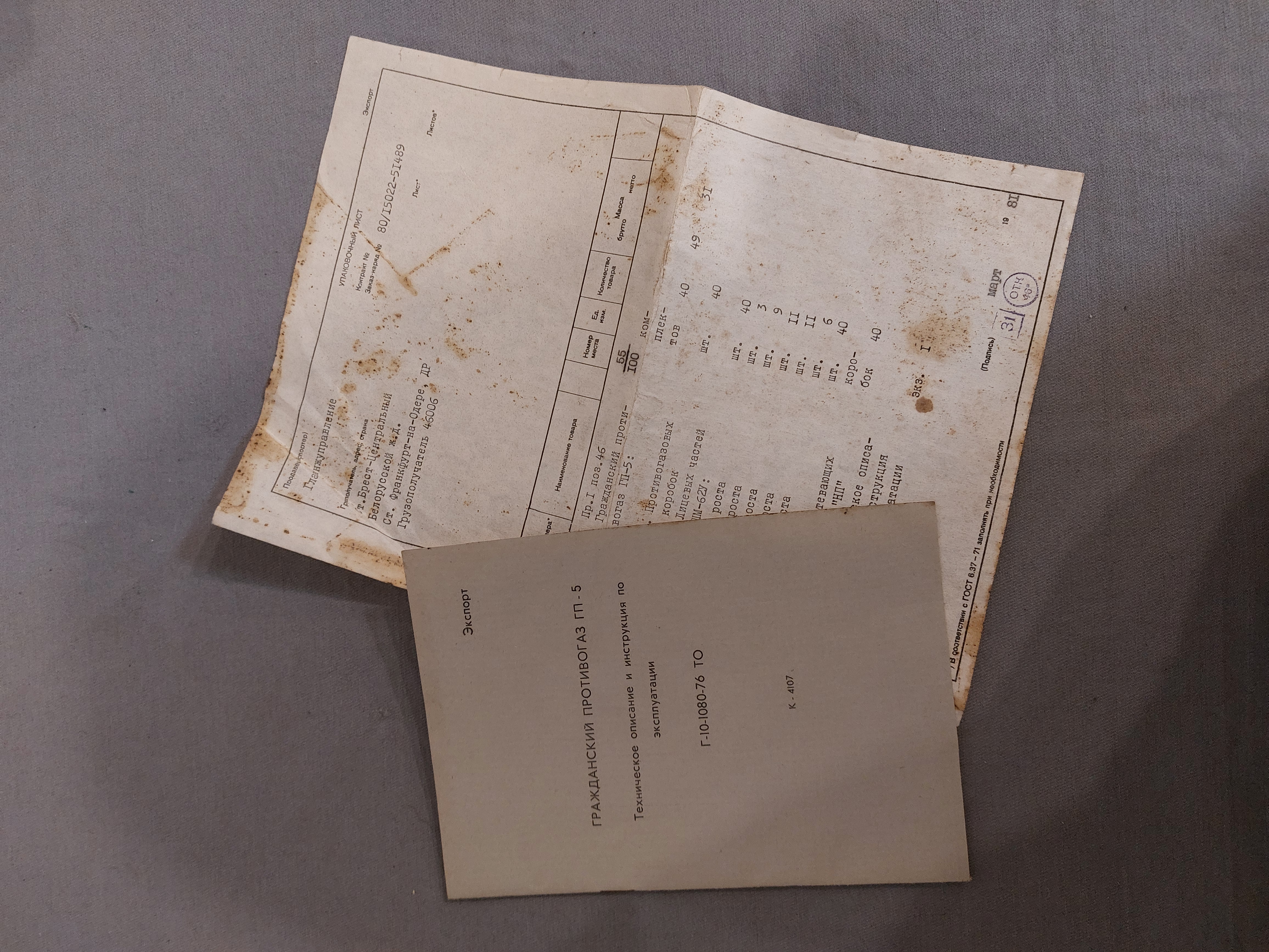 UdSSR Gebrauchsanweisung und Lieferschein für Gasmaske GP-5 - Original