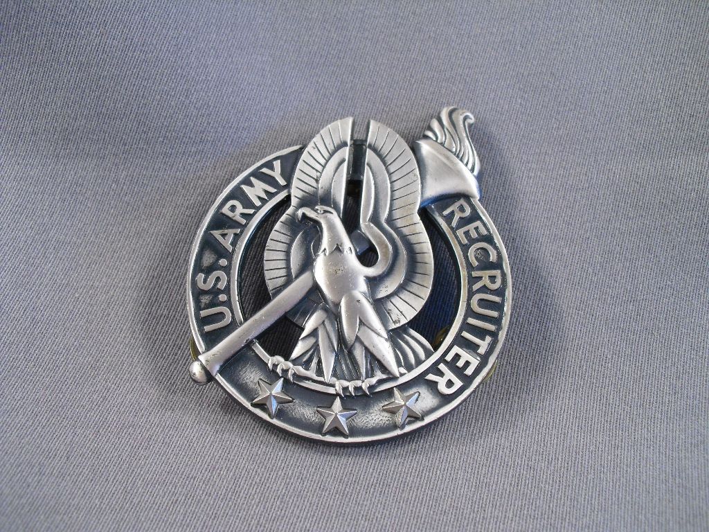 Brustabzeichen, Army Recruiter, silber, 55 mm mit 3 Sternen Metall geprägt mit 3 Splinten, Durchmesser 55mm, Hersteller KREW G-INeu
