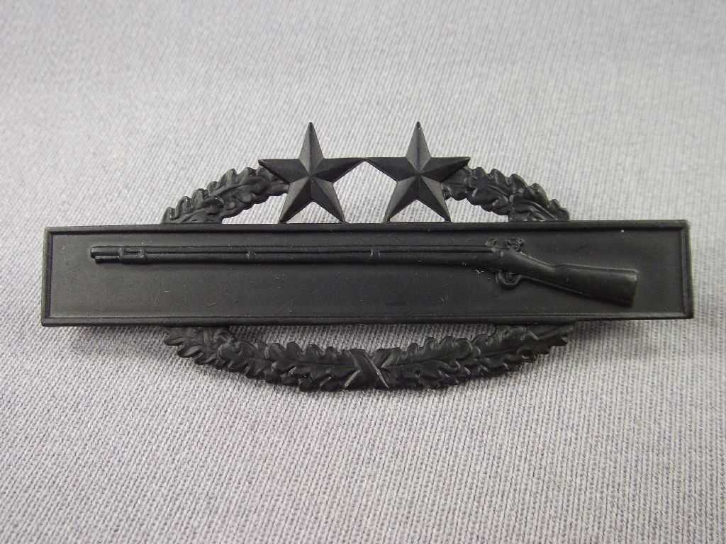 Brustabzeichen, Combat Infantry Badge, 3rd Award, Metall, schwarz, Kranz und 2 Sterne, CIB Neu